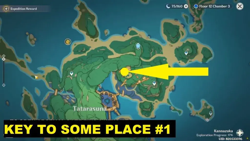 아래 사진과 같이 빠른 여행지 남서쪽에 있는 타타라수나에 있는 딥의 신전 안에 호화로운 보물 상자를 발견할 수 있을 것입니다. 신사참배 키를 얻는 방법을 보려면 링크를 확인하십시오.