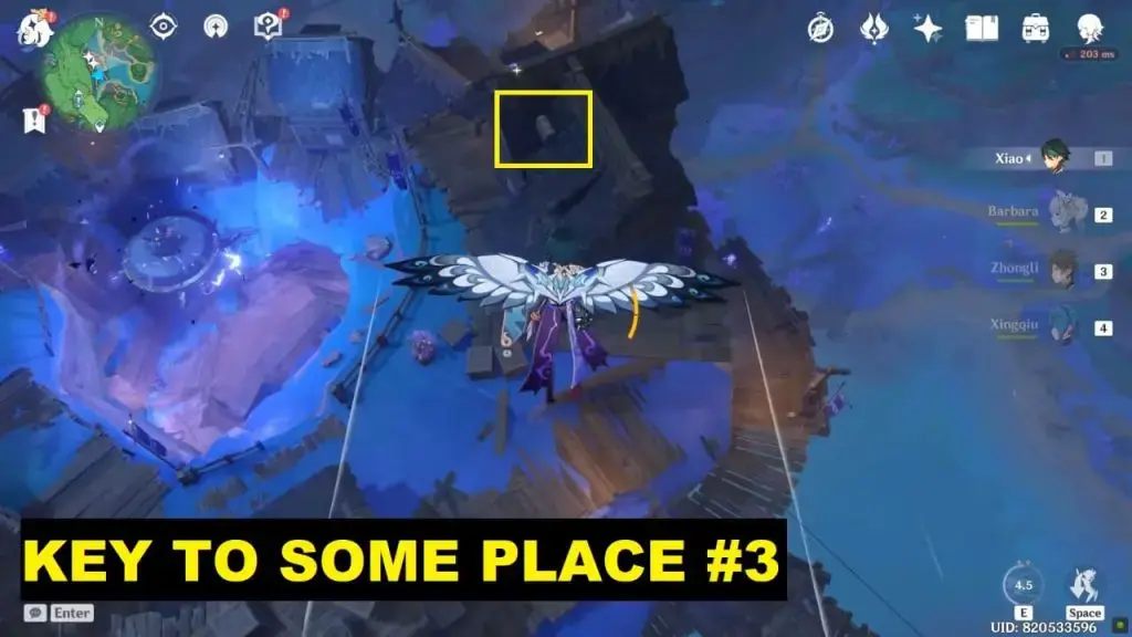 Something Place #3의 열쇠는 미카게로 근처의 타타라수나의 중심부에 있다(아래 이미지에서 정확한 위치를 확인하십시오).열쇠가 들어 있는 공용 상자는 미카게 용해로 구역의 오두막 지붕에 있습니다. 서쪽 절벽에서 미카게 아궁이에 접근하면 더 좋습니다. 절벽에서 뛰어내릴 수 있고, 쉽게 공동의 보물 상자까지 미끄러져 갈 수 있습니다.