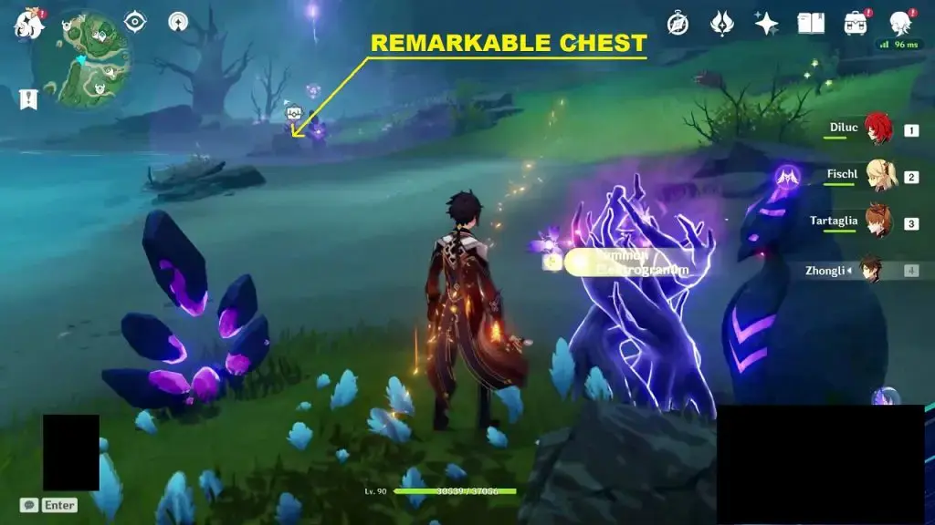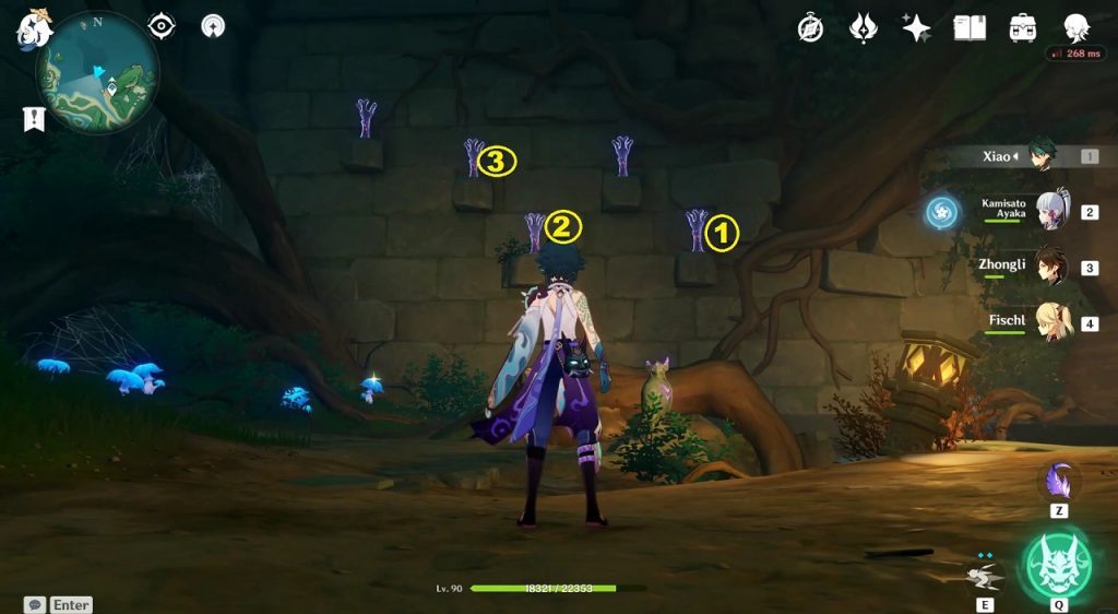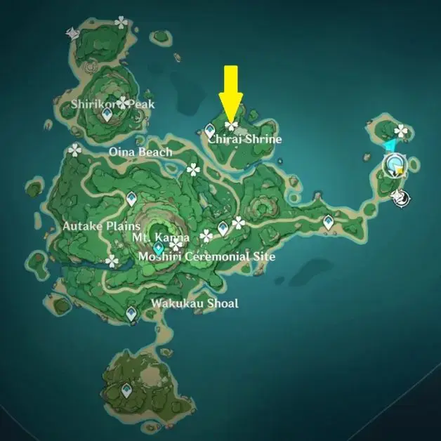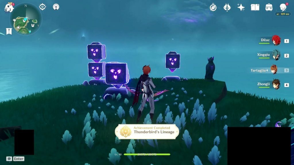 원신 츠루미 섬 모든 뇌조 조각상 지도 위치 및 퍼즐, 아래 표시된 위치에서 뇌조(썬더버드) 동상 앞에 있는 '페쿨리아 피니언' 가젯을 사용하십시오. 이것은 산벽에 몇 가지 상징을 보이게 할 것입니다. 퍼즐을 완료하려면 벽에 있는 모든 기호를 활성화하십시오. 퍼즐을 완성하는 것은 정교한 보물 상자를 낳는입니다.