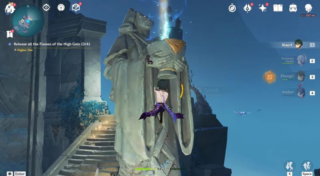 그 후 네 개의 불꽃을 모두 잡기 위해 각 동상 위로 올라갔습니다.