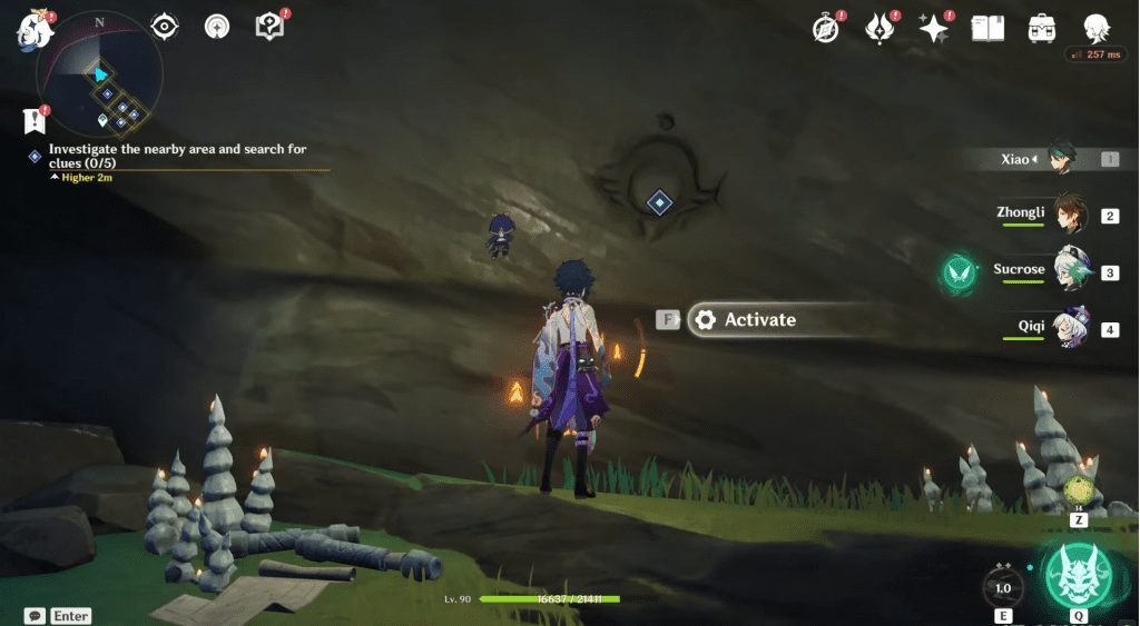 텔레포트 웨이포인트를 활성화한 후 인근 지역에서 5개의 기호를 검색해야 합니다. 표시된 5개의 모든 위치로 이동하여 벽에 있는 조각들을 활성화하십시오. 모든 기호는 아래 이미지를 참조하십시오.