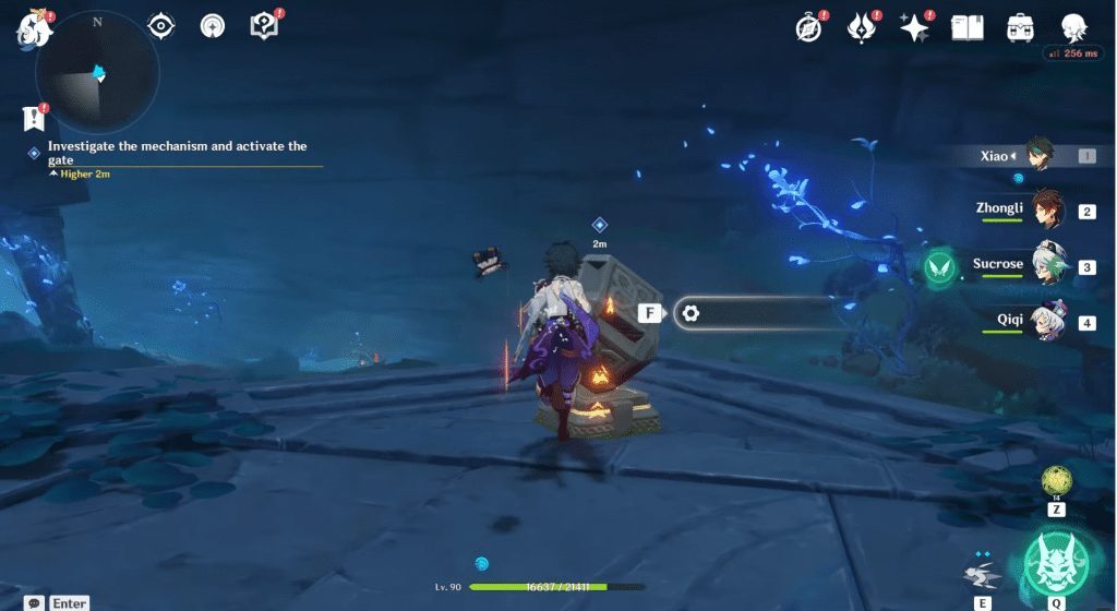가까운 곳에 있는 5개의 조각들을 모두 작동시킨 후 다시 게이트로 향합니다. 게이트 앞에 있는 큐브 메커니즘과 상호 작용하여 활성화하십시오. 이렇게 하면 그 뒤에 숨은 길이 드러나도록 대문을 열게 됩니다.